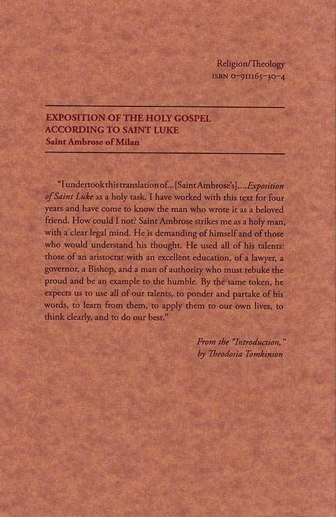 Exposition of the Holy Gospel According to Saint Luke. With Fragments on the Prophecy of Esaias by Saint Ambrose of Milan