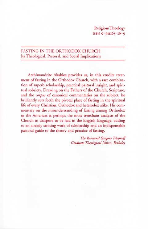 Fasting in the Orthodox Church - Christian Life - Spiritual Instruction - Book